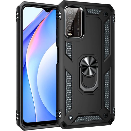 Mobigear Armor Ring Coque Xiaomi Redmi 9T Coque arrière Rigide Anti-Chocs avec Anneau-Support - Noir