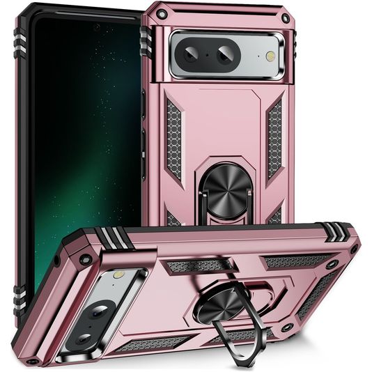 Mobigear Armor Ring Coque Google Pixel 8a Coque arrière Rigide Anti-Chocs avec Anneau-Support - Rose doré