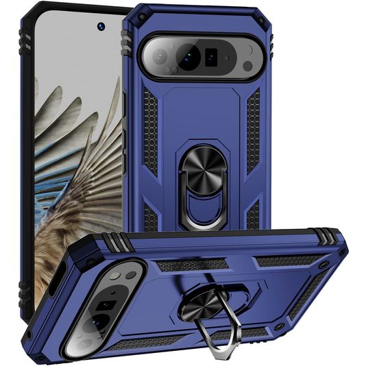 Mobigear Armor Ring Coque Google Pixel 9 Pro XL Coque arrière Rigide Anti-Chocs avec Anneau-Support - Bleu