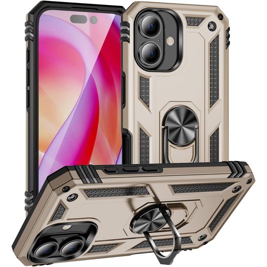 Mobigear Armor Ring Coque iPhone 16 Coque arrière Rigide Anti-Chocs avec Anneau-Support - Or