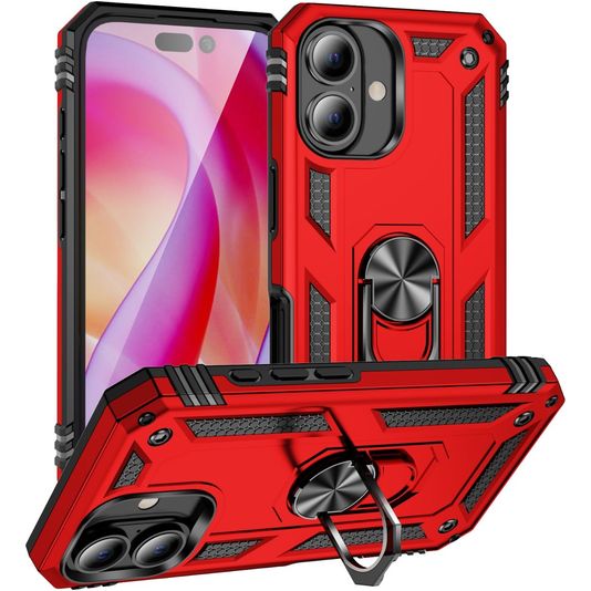 Mobigear Armor Ring Coque iPhone 16 Plus Coque arrière Rigide Anti-Chocs avec Anneau-Support - Rouge