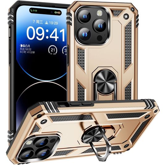 Mobigear Armor Ring Coque iPhone 16 Pro Max Coque arrière Rigide Anti-Chocs avec Anneau-Support - Or