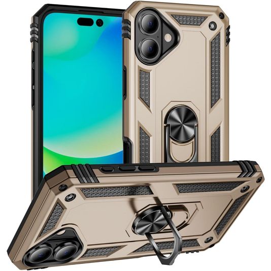 Mobigear Armor Ring Coque iPhone 17 Coque arrière Rigide Anti-Chocs avec Anneau-Support - Or