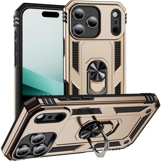 Mobigear Armor Ring Coque iPhone 17 Pro Coque arrière Rigide Anti-Chocs avec Anneau-Support - Or