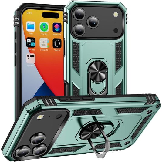 Mobigear Armor Ring Coque iPhone 17 Pro Max Coque arrière Rigide Anti-Chocs avec Anneau-Support - Vert