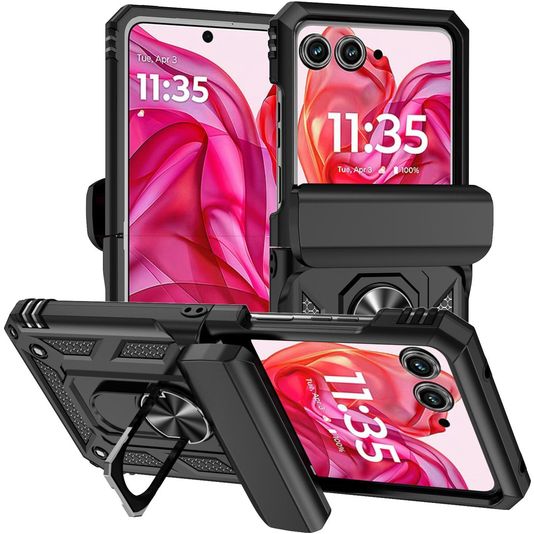 Mobigear Armor Ring Coque Motorola Razr 50 Coque arrière Rigide Anti-Chocs avec Anneau-Support - Noir