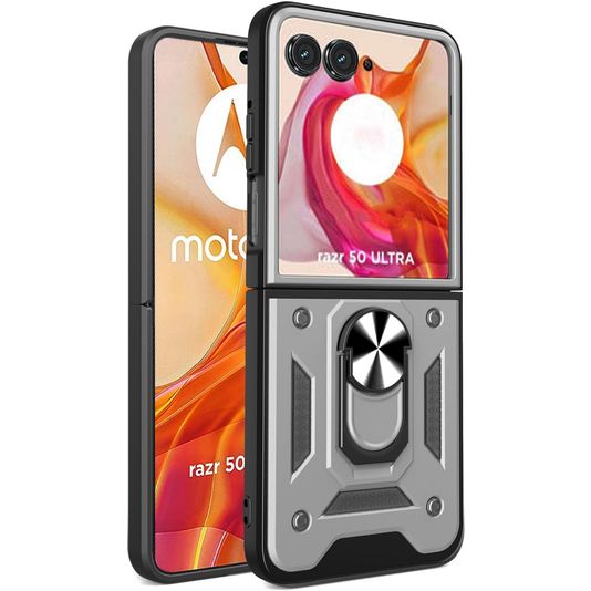 Mobigear Armor Ring Coque Motorola Razr 50 Ultra Coque arrière Rigide Anti-Chocs avec Anneau-Support - Argent