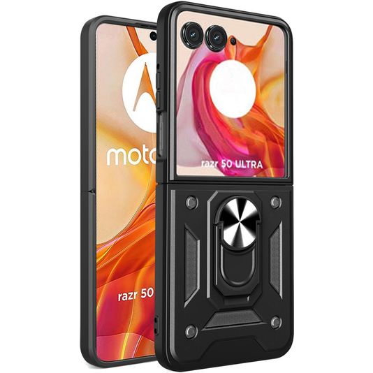 Mobigear Armor Ring Coque Motorola Razr 50 Ultra Coque arrière Rigide Anti-Chocs avec Anneau-Support - Noir