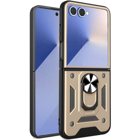 Mobigear Armor Ring Coque Samsung Galaxy Z Flip 7 Coque arrière Rigide Anti-Chocs avec Anneau-Support - Or