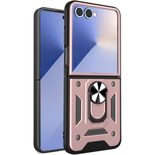 Mobigear Armor Ring Coque Samsung Galaxy Z Flip 7 Coque arrière Rigide Anti-Chocs avec Anneau-Support - Rose doré