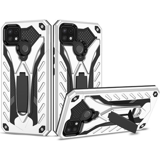 Mobigear Armor Stand Coque Realme C25Y Coque arrière Rigide Anti-Chocs avec Support Amovible - Argent