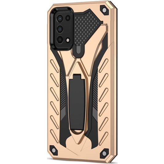 Mobigear Armor Stand Coque Samsung Galaxy A03s Coque arrière Rigide Anti-Chocs avec Support Amovible - Or