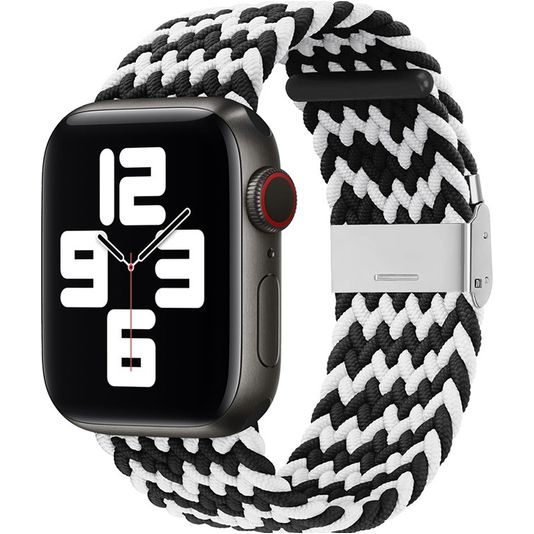 Mobigear Braided Bracelet Nylon Apple Watch Fermeture à pince - 49/46/45/44 mm - Noir / Blanc