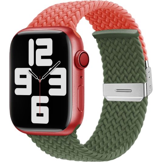 Mobigear Braided Dual Bracelet Nylon Apple Watch Fermeture à pince - 49/46/45/44 mm - Vert / Orange