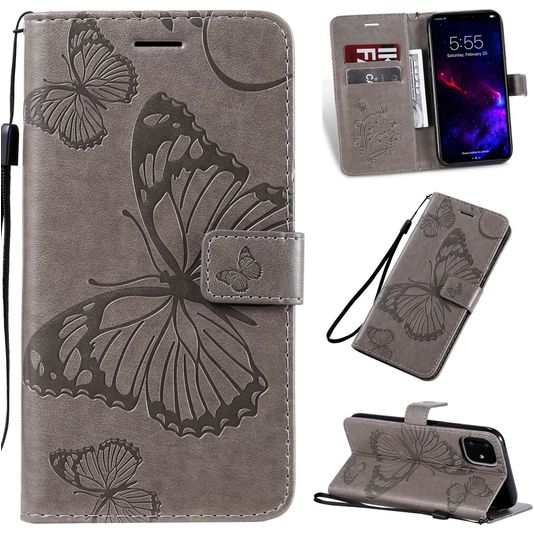 Mobigear Butterfly Housse iPhone 11 Etui Porte-Monnaie - Gris