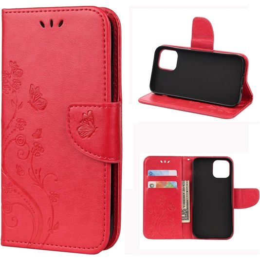 Mobigear Flowers Housse iPhone 12 Pro Etui Porte-Monnaie - Rouge