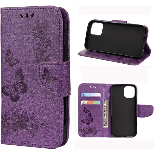 Mobigear Butterfly Housse iPhone 12 Etui Porte-Monnaie - Violet