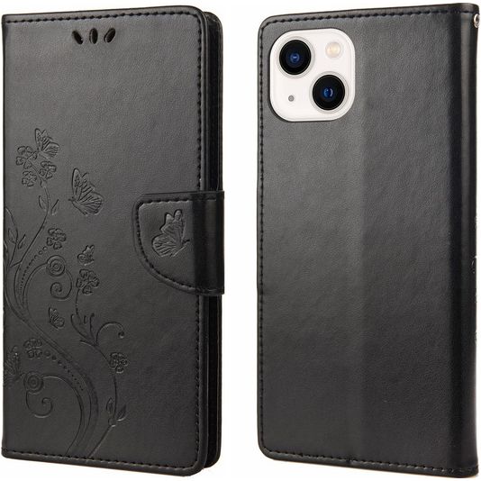 Mobigear Flowers Housse iPhone 14 Etui Porte-Monnaie - Noir
