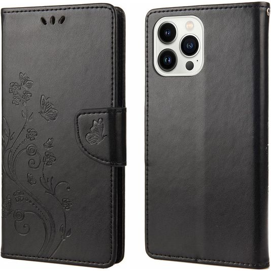 Mobigear Flowers Housse iPhone 14 Pro Etui Porte-Monnaie - Noir