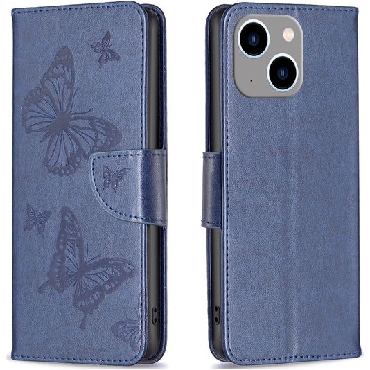 Mobigear Butterfly Housse iPhone 15 Plus Etui Porte-Monnaie - Bleu