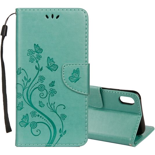 Mobigear Flowers Housse iPhone XR Etui Porte-Monnaie - Turquoise