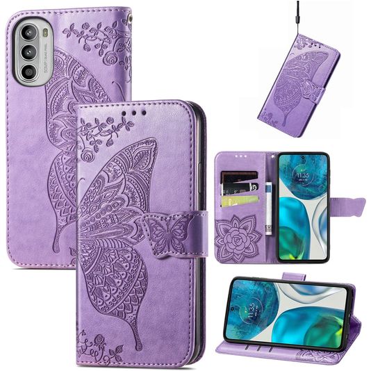 Mobigear Butterfly Housse Motorola Moto G52 Etui Porte-Monnaie - Violet