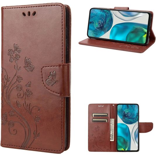 Mobigear Flowers Housse Motorola Moto G82 Etui Porte-Monnaie - Marron