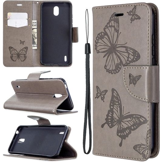 Mobigear Butterfly Housse Nokia 1.3 Etui Porte-Monnaie - Gris