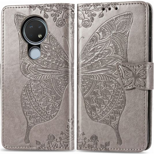 Mobigear Butterfly Housse Nokia 7.2 Etui Porte-Monnaie - Gris