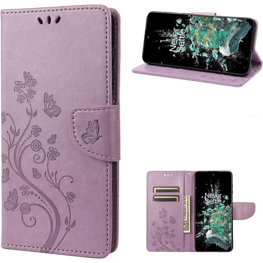 Mobigear Butterfly Housse OnePlus 10T Etui Porte-Monnaie - Violet