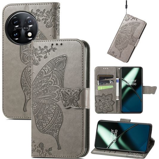 Mobigear Butterfly Housse OnePlus 11 Etui Porte-Monnaie - Gris