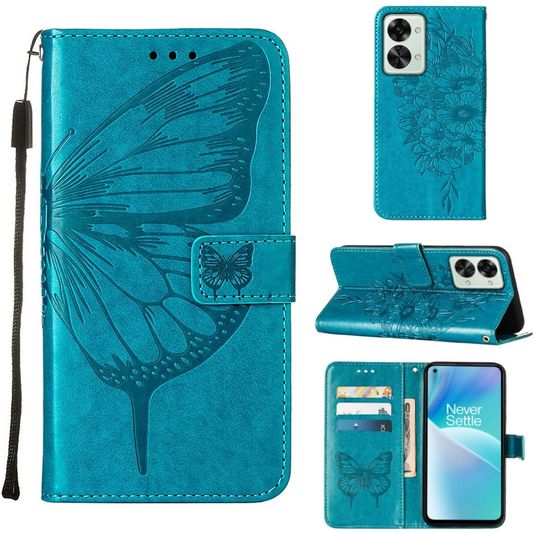 Mobigear Butterfly Housse OnePlus Nord 2T 5G Etui Porte-Monnaie - Bleu