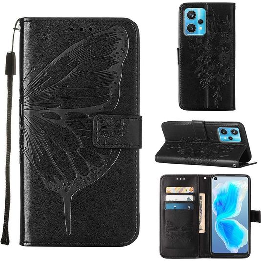 Mobigear Butterfly Housse Realme 9 Pro Plus Etui Porte-Monnaie - Noir