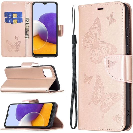 Mobigear Butterfly Housse Samsung Galaxy A22 5G Etui Porte-Monnaie - Rose doré