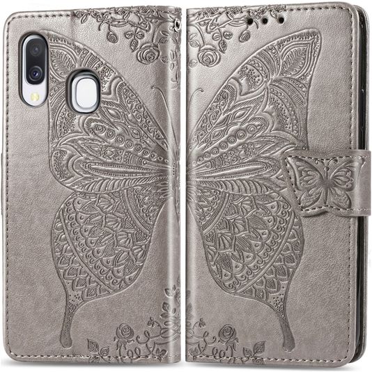 Mobigear Butterfly Housse Samsung Galaxy A40 Etui Porte-Monnaie - Gris