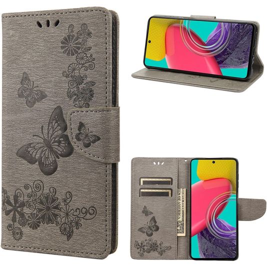 Mobigear Butterfly Housse Samsung Galaxy M53 Etui Porte-Monnaie - Gris