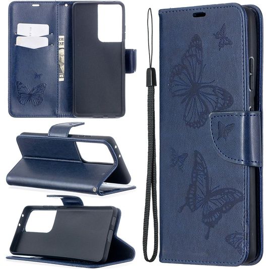 Mobigear Butterfly Housse Samsung Galaxy S21 Ultra Etui Porte-Monnaie - Bleu