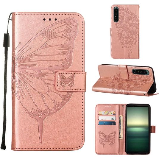 Mobigear Butterfly Housse Sony Xperia 1 IV Etui Porte-Monnaie - Rose doré