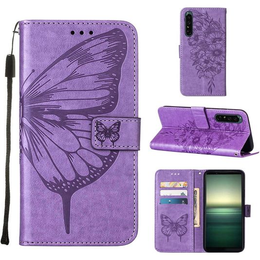 Mobigear Butterfly Housse Sony Xperia 1 IV Etui Porte-Monnaie - Violet