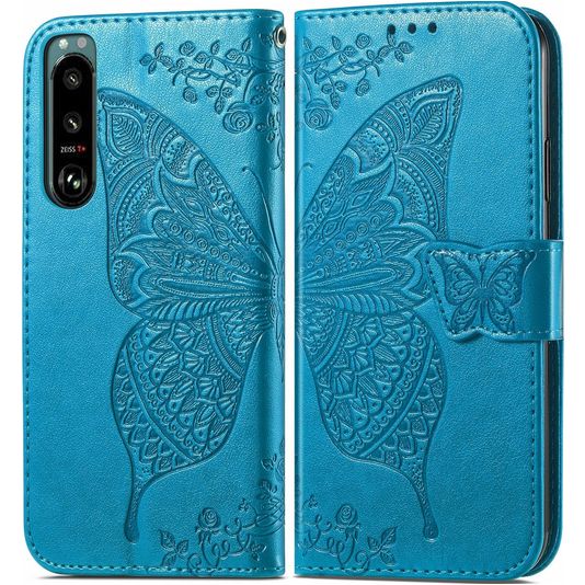 Mobigear Butterfly Housse Sony Xperia 5 IV Etui Porte-Monnaie - Bleu