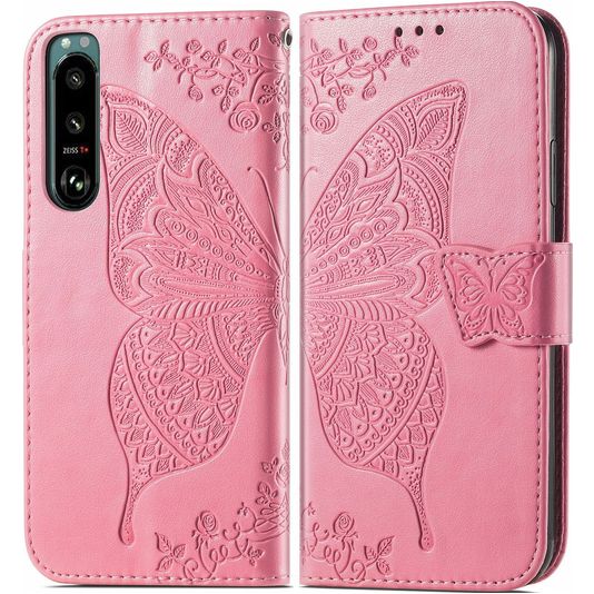 Mobigear Butterfly Housse Sony Xperia 5 IV Etui Porte-Monnaie - Rose