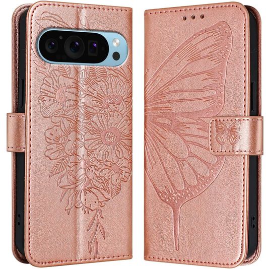 Mobigear Butterfly Housse Google Pixel 9 Pro XL Etui Porte-Monnaie - Rose doré