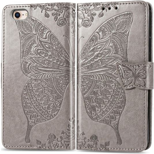 Mobigear Butterfly Housse iPhone 16e Etui Porte-Monnaie - Gris