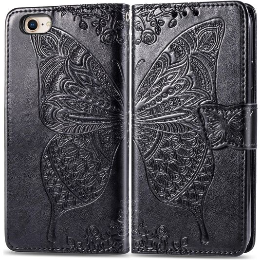 Mobigear Butterfly Housse iPhone 16e Etui Porte-Monnaie - Noir