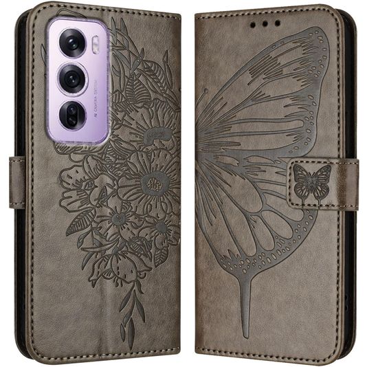 Mobigear Butterfly Housse OPPO Reno 12 Pro Etui Porte-Monnaie - Gris