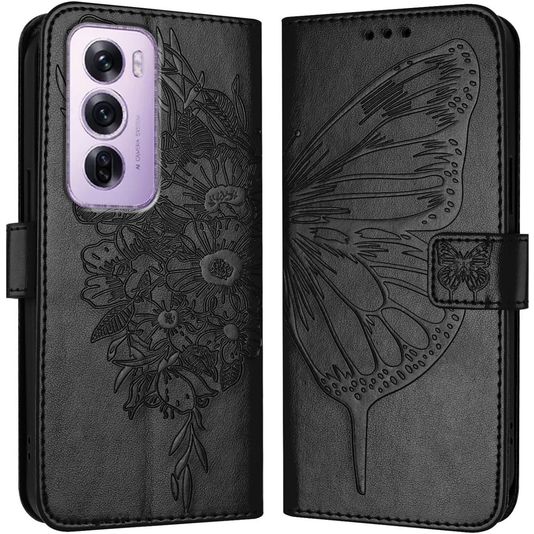 Mobigear Butterfly Housse OPPO Reno 12 Pro Etui Porte-Monnaie - Noir