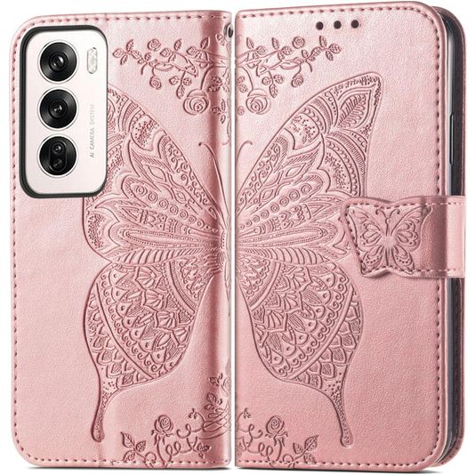 Mobigear Butterfly Housse OPPO Reno 12 Pro Etui Porte-Monnaie - Rose doré