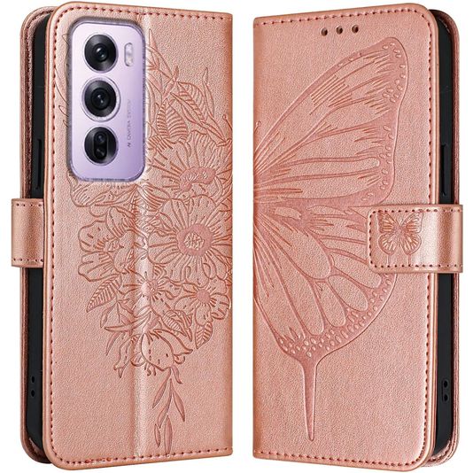 Mobigear Butterfly Housse OPPO Reno 12 Pro Etui Porte-Monnaie - Rose doré