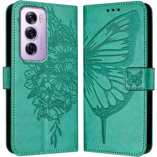 Mobigear Butterfly Housse OPPO Reno 12 Pro Etui Porte-Monnaie - Vert