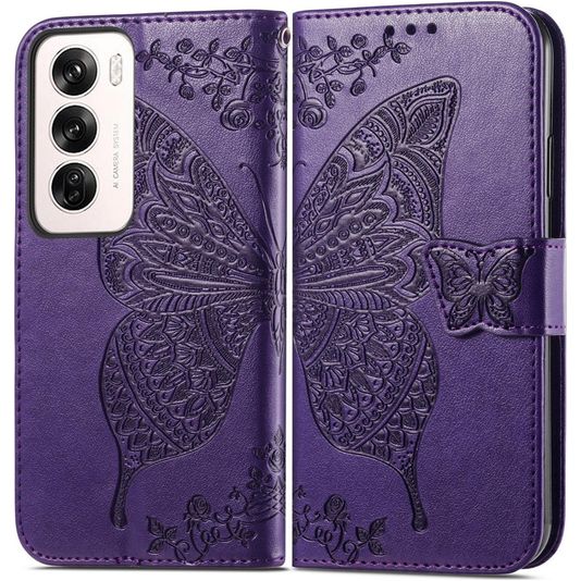 Mobigear Butterfly Housse OPPO Reno 12 Pro Etui Porte-Monnaie - Violet